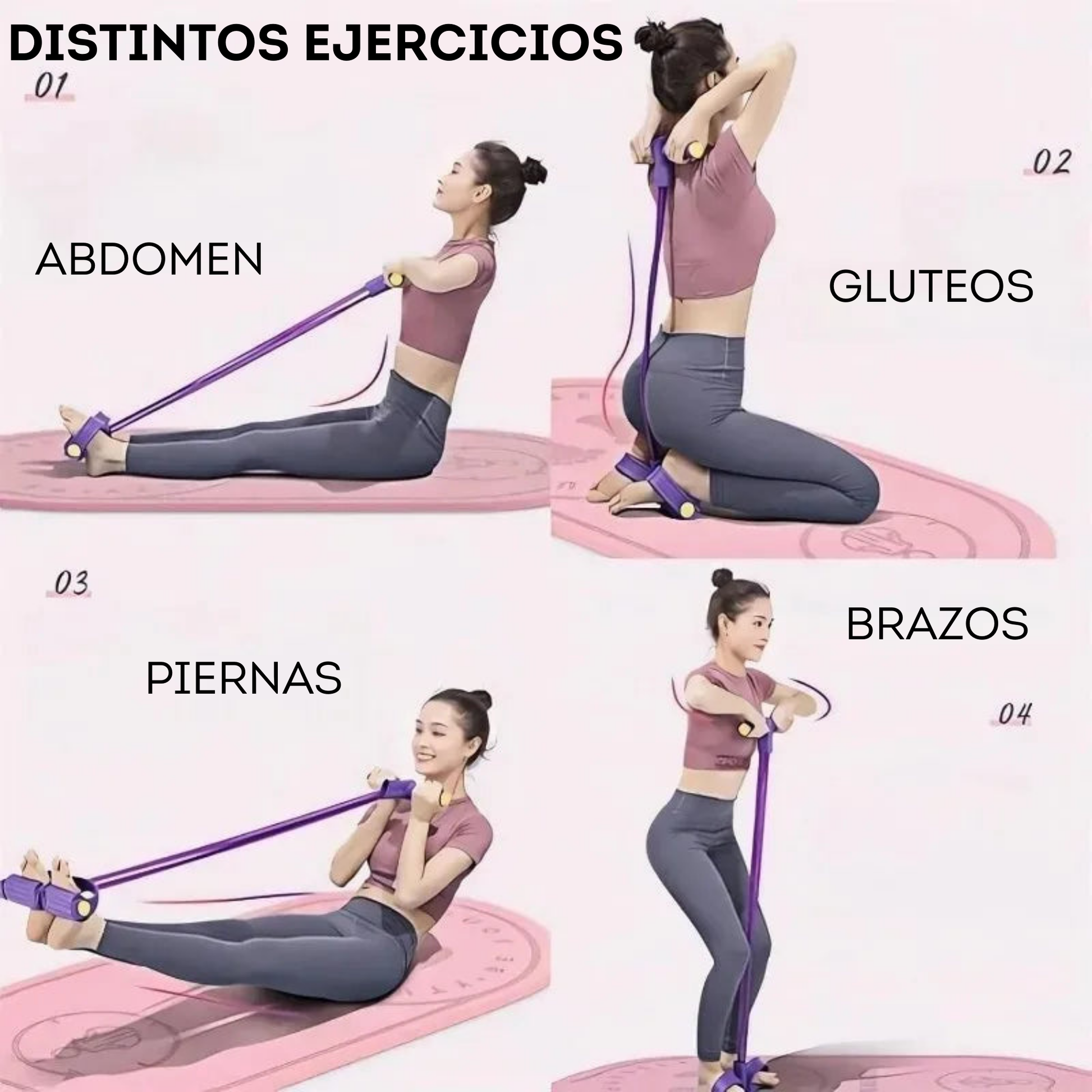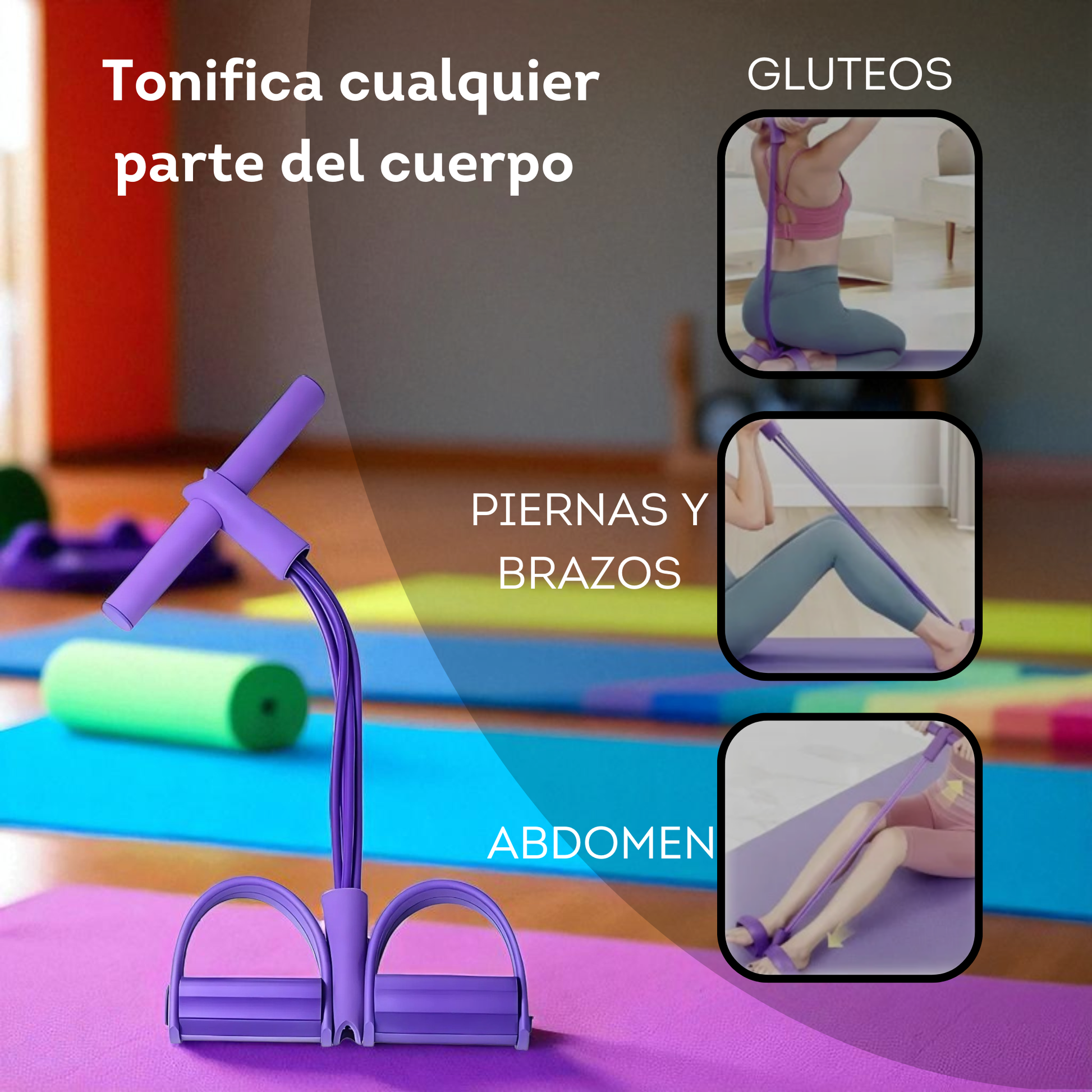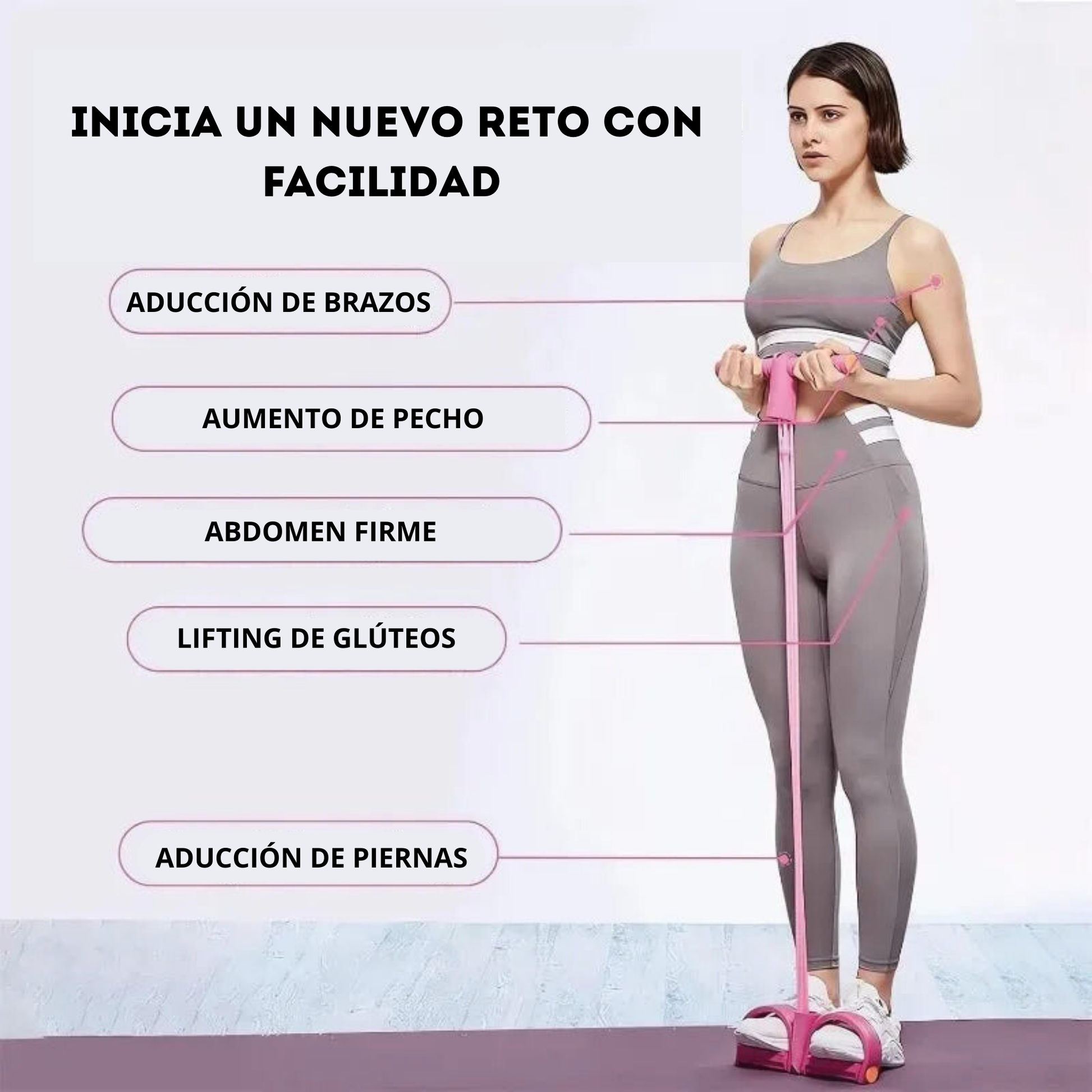 Combina la potencia de una banda de resistencia, una correa de yoga y una barra para abdominales en una sola herramienta, perfecta para quienes buscan trabajar varios grupos musculares con un equipo compacto.